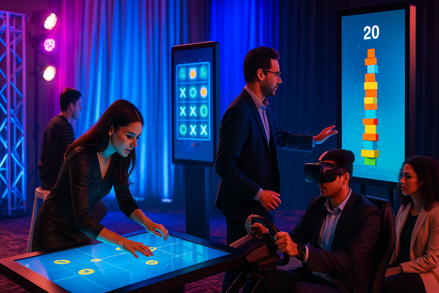 High-engagement interactive games for events in Hyderabad — perfect for corporate events, college fests, weddings, brand activations, malls & parties. Choose from digital games, physical challenges, skill-based attractions, reaction games, VR simulators, and more.